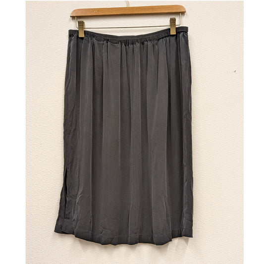 90s Valerie Stevens Black Silk Lycra Midi Skirt
