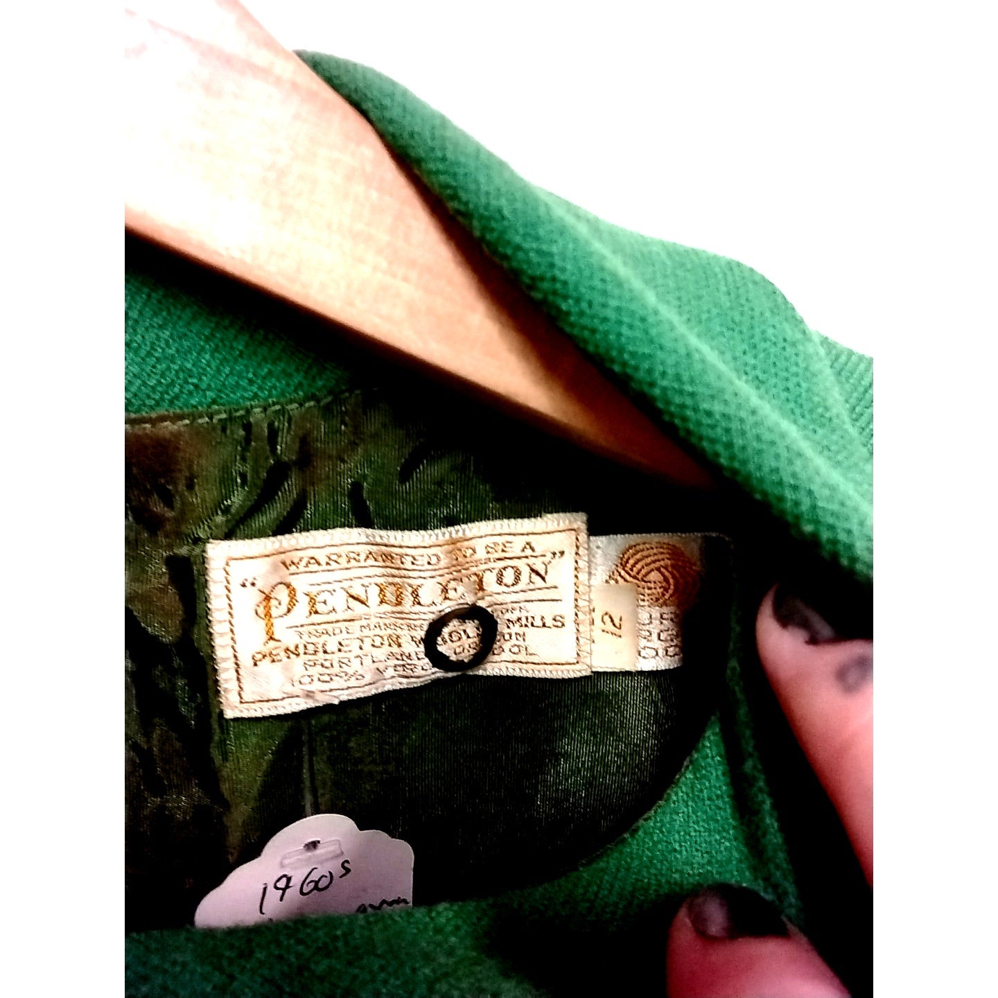 Step back in time with this stunning vintage 1960s green Pendleton wool dress! This dress exudes classic style and timeless elegance. Made from high-quality Pendleton wool, it offers warmth, durability, and a luxurious feel.