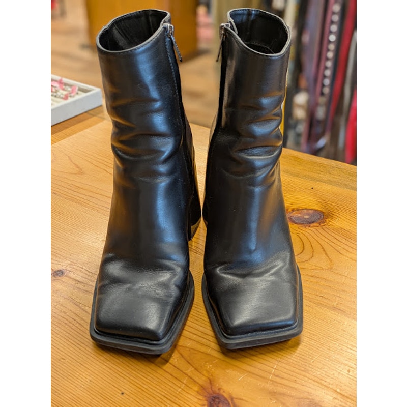 Step out in bold style with these Circus by Sam Edelman Black Chunky Heel Boots, the perfect mix of edgy and versatile. Featuring a sleek faux leather finish, these ankle boots are designed with a sturdy block heel and a rugged lug sole for all-day comfort and a confident stride. The side zipper ensures easy on-and-off wear, while the minimalist silhouette makes them easy to pair with everything from jeans to dresses. Whether you're dressing up or down, these boots add a fierce, modern touch to any outfit.