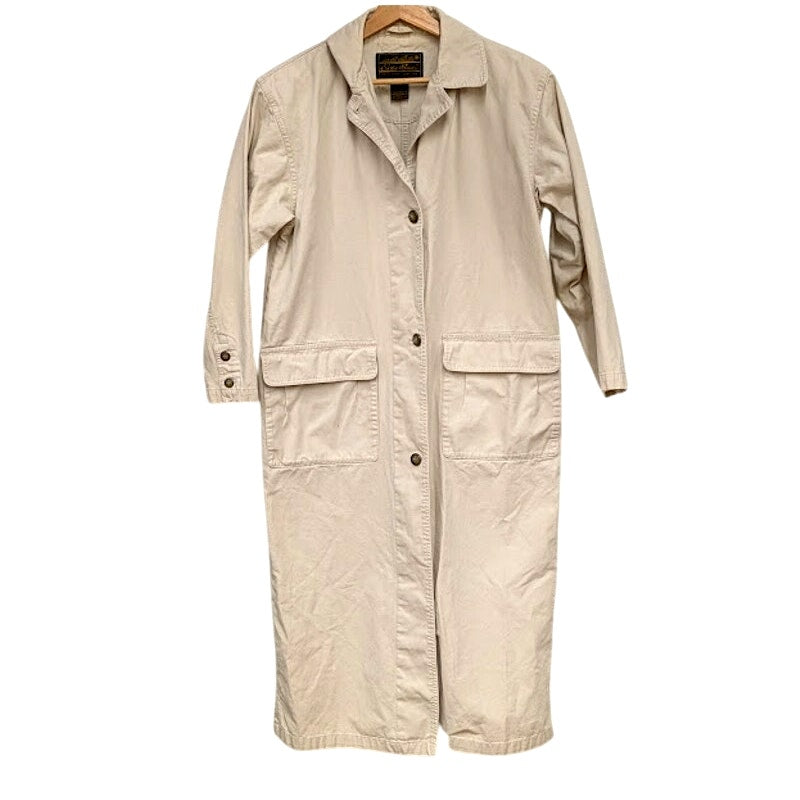 Classic and versatile, this Eddie Bauer Tan Duster is the perfect layering piece for transitional weather. Designed with a long, relaxed silhouette, it offers timeless style and effortless coverage that pairs well with both casual and dressy looks. The neutral tan shade makes it easy to mix and match, while its lightweight construction ensures comfort without compromising on warmth. A great wardrobe staple for adding polish to everyday outfits.