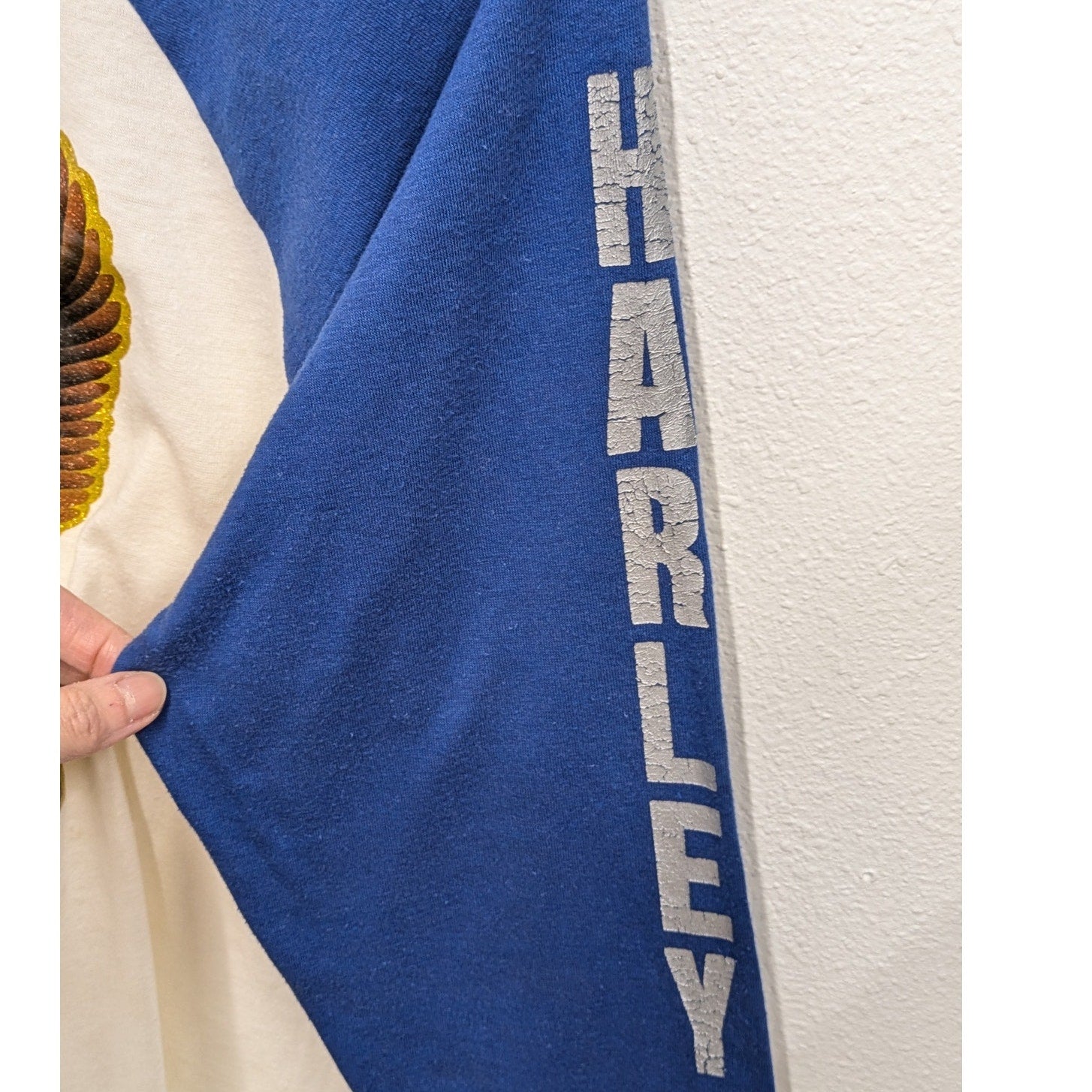 Channel 70s vibes with this classic Harley-Davidson tee, featuring the iconic Harley eagle graphic boldly printed on the front and "Harley" lettering down the sleeve. Made from a soft, lightweight polyester-cotton blend, this shirt combines comfort with vintage-inspired style. Perfect for casual wear, it’s a unique piece that lets you celebrate the timeless spirit of Harley-Davidson. Whether you're a collector or simply love retro style, this tee is a must-have addition to any vintage wardrobe!